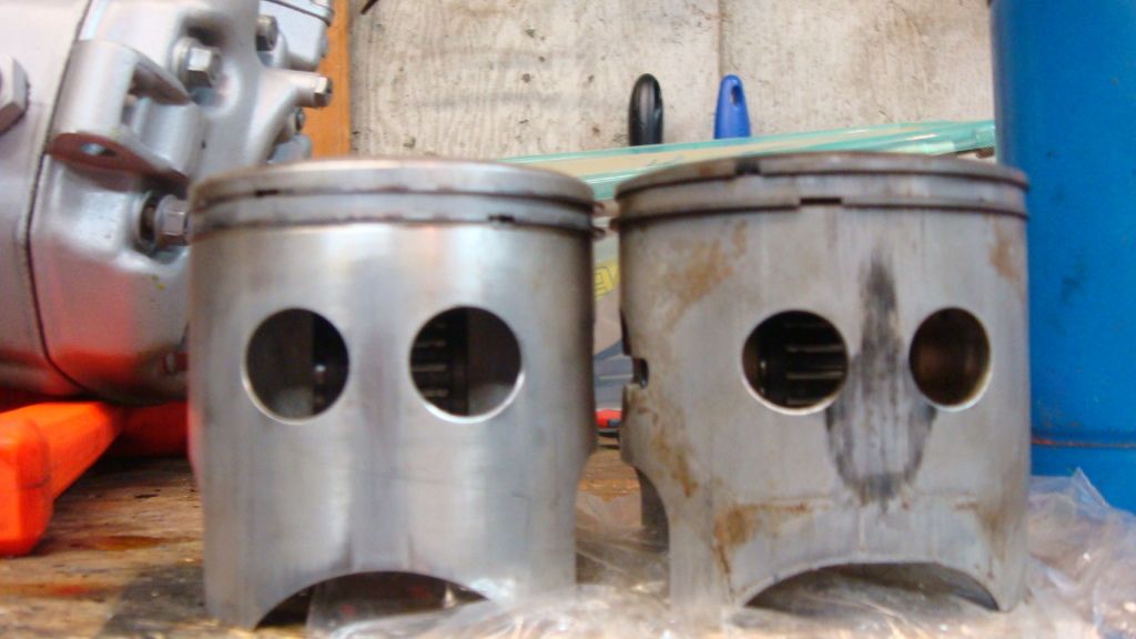 I'm not sure what pistons you are comparing (stock vs aftermarket ect...)the kx from 78-86 uses the same piston as all year kxt's. the only difference is the the piston should be drilled to lube the exhaust bridge.