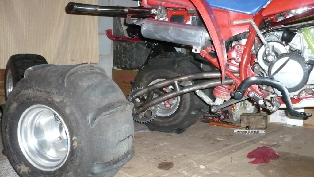 Finally got around to bolting the new swingarm up and my paddles came in, right on time. My bikes filthy and it's in need of a good detail job asap! better pics soon to come =)
