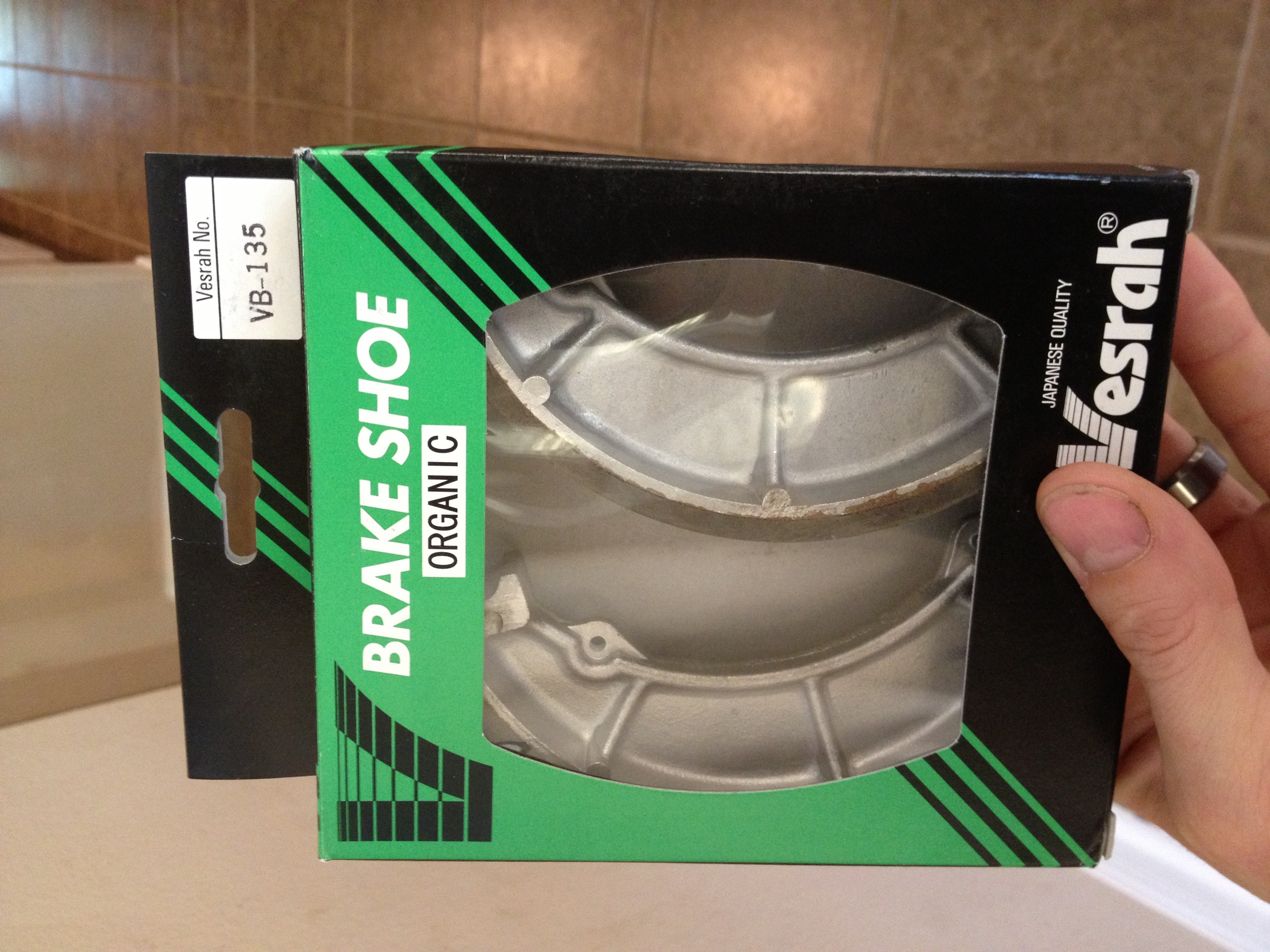 Last i tried the OEM wasn't available for the 200ES, got put on backorder for a month than i gave up and got some off eBay. Those VB-135's are exactly what my 200ES has though, they do fit. I didn't have to file or sand them down, they went right in. You have to back off the brake adjustment all the way to get the brake assembly apart, after you put the new shoes in you won't need more then a few turns of adjustment on the cable to get them to grab fast! I have had good luck with them.