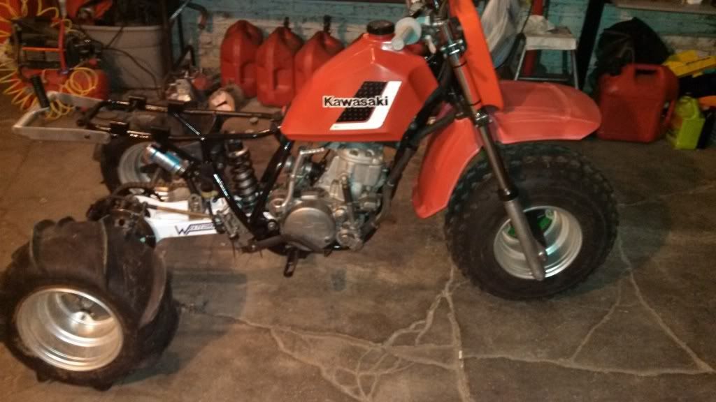 '81 ATC 250r: IMS tank,Uni pod filter,Keihin PJ flat 38mm,Boyesen Pro series reeds,reed spacer w/ boost bottle,milled head,bored(.080),ported,machined CR exhaust flange,and Mugen pipe.PK +3 swingarm,2+2 axle,ITP rims,and 200X fork swap w/ polished tree.