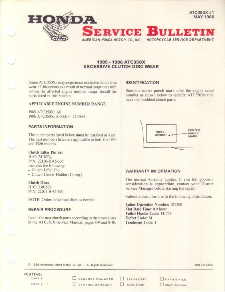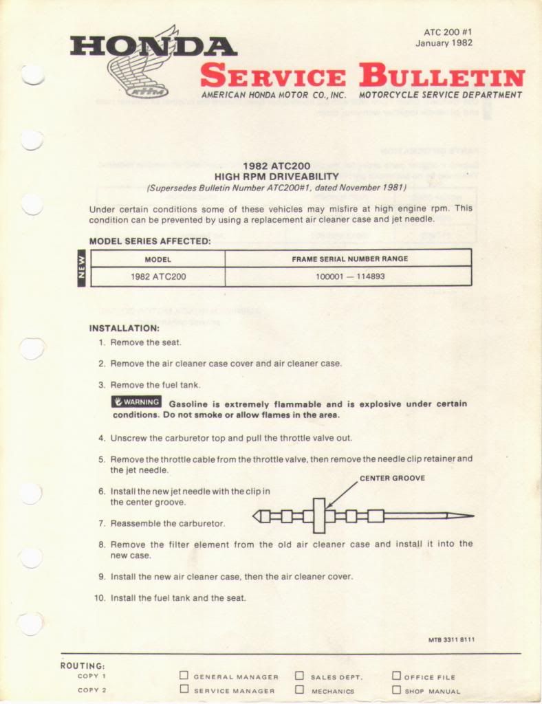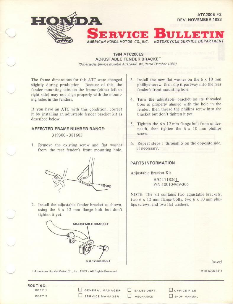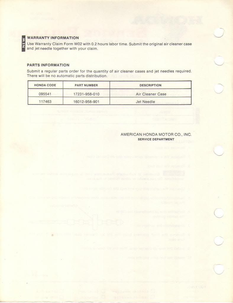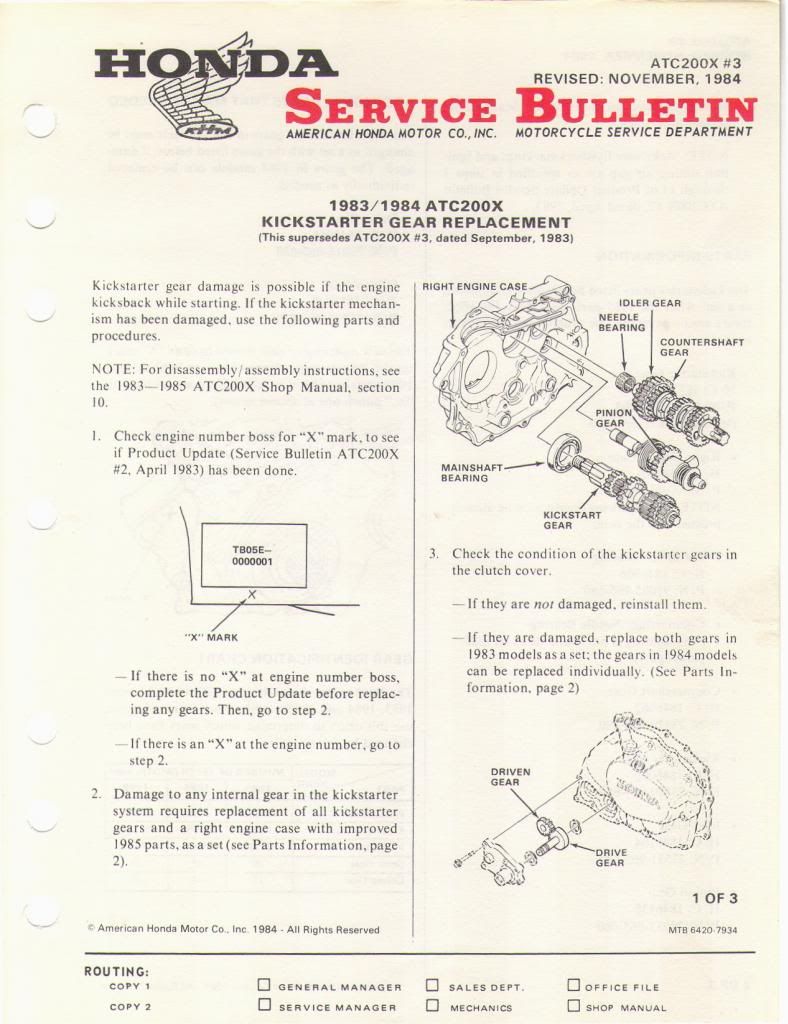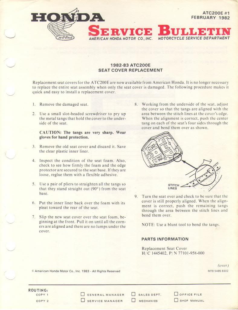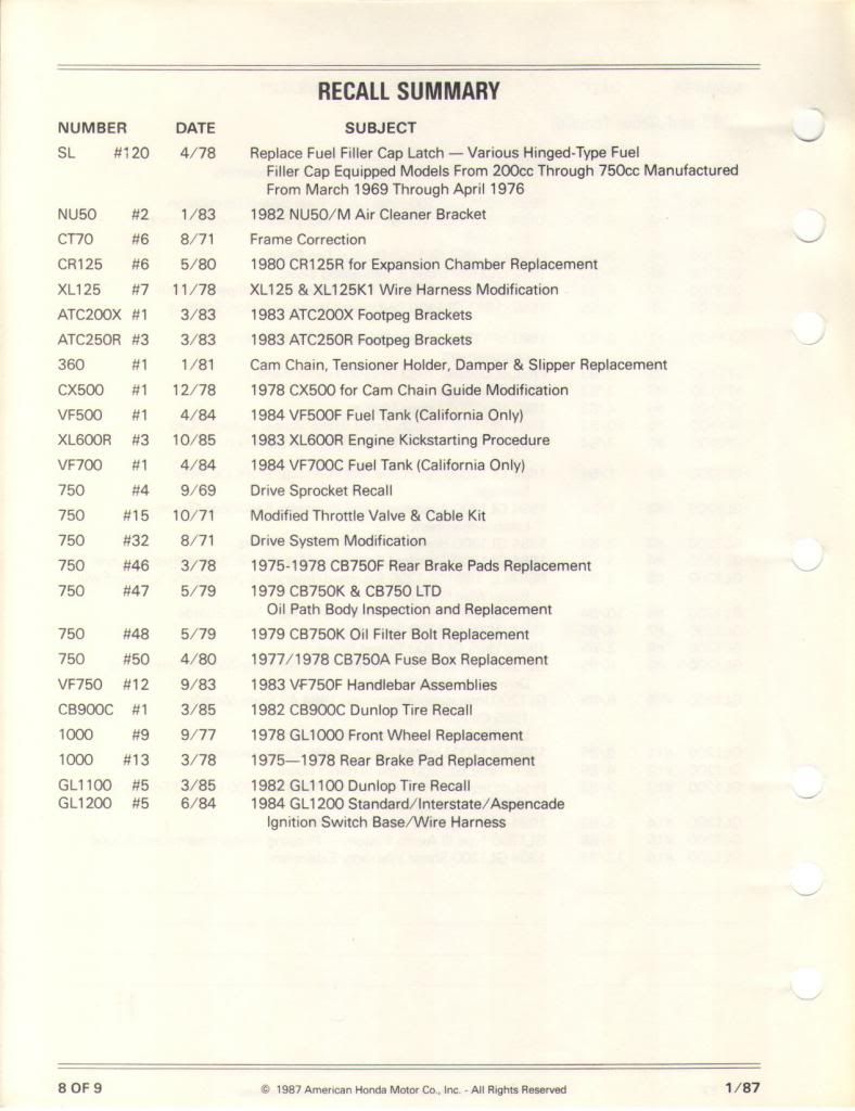 I scored a collection of Honda Service Bulletins on e-bay. The binder appears pretty complete, and includes service bulletins through January of 1987.