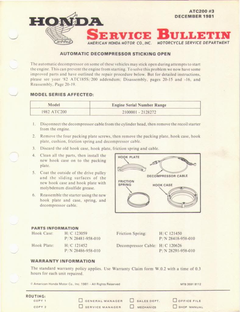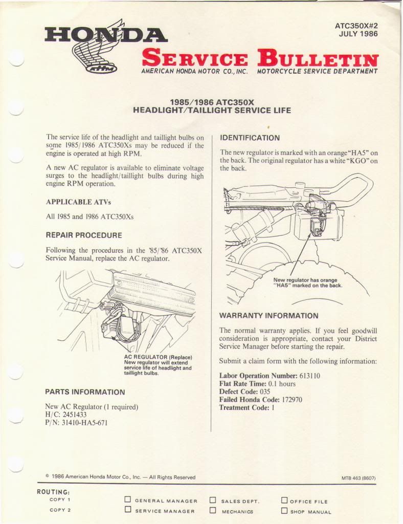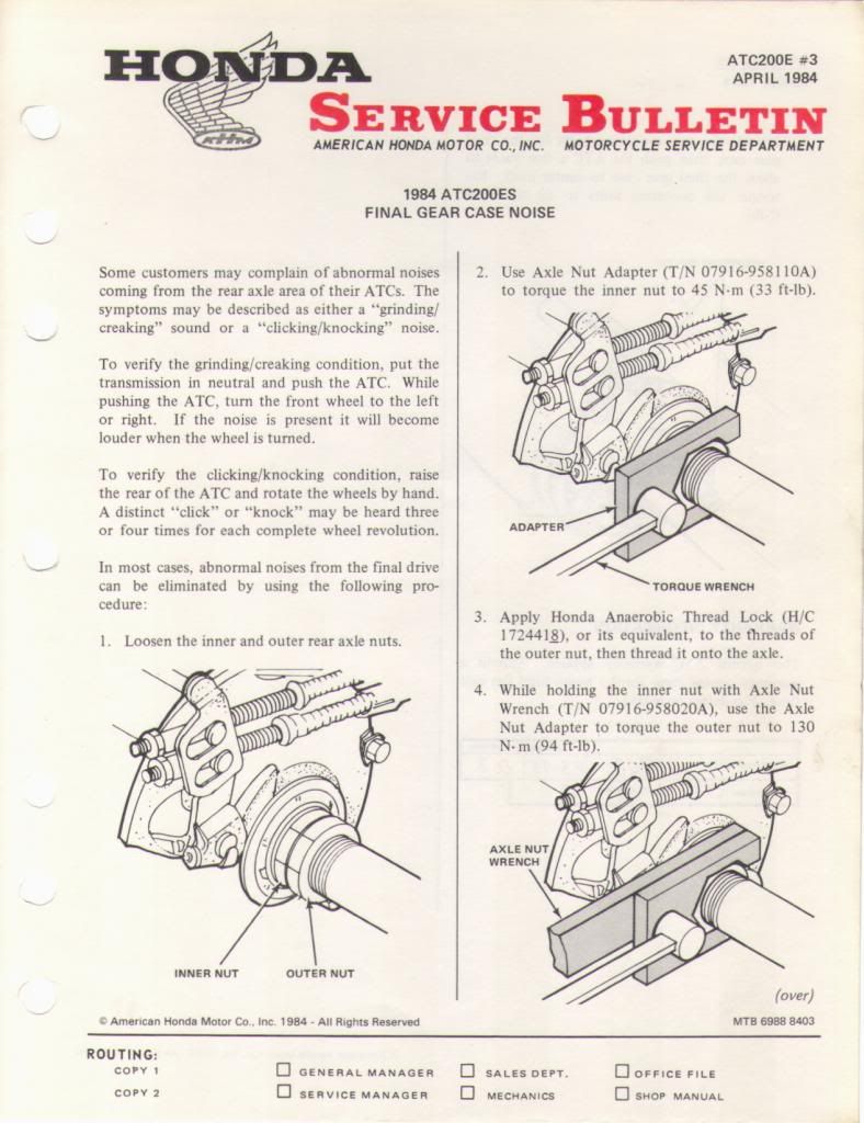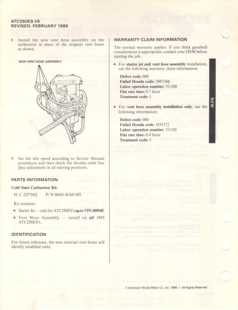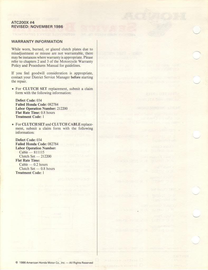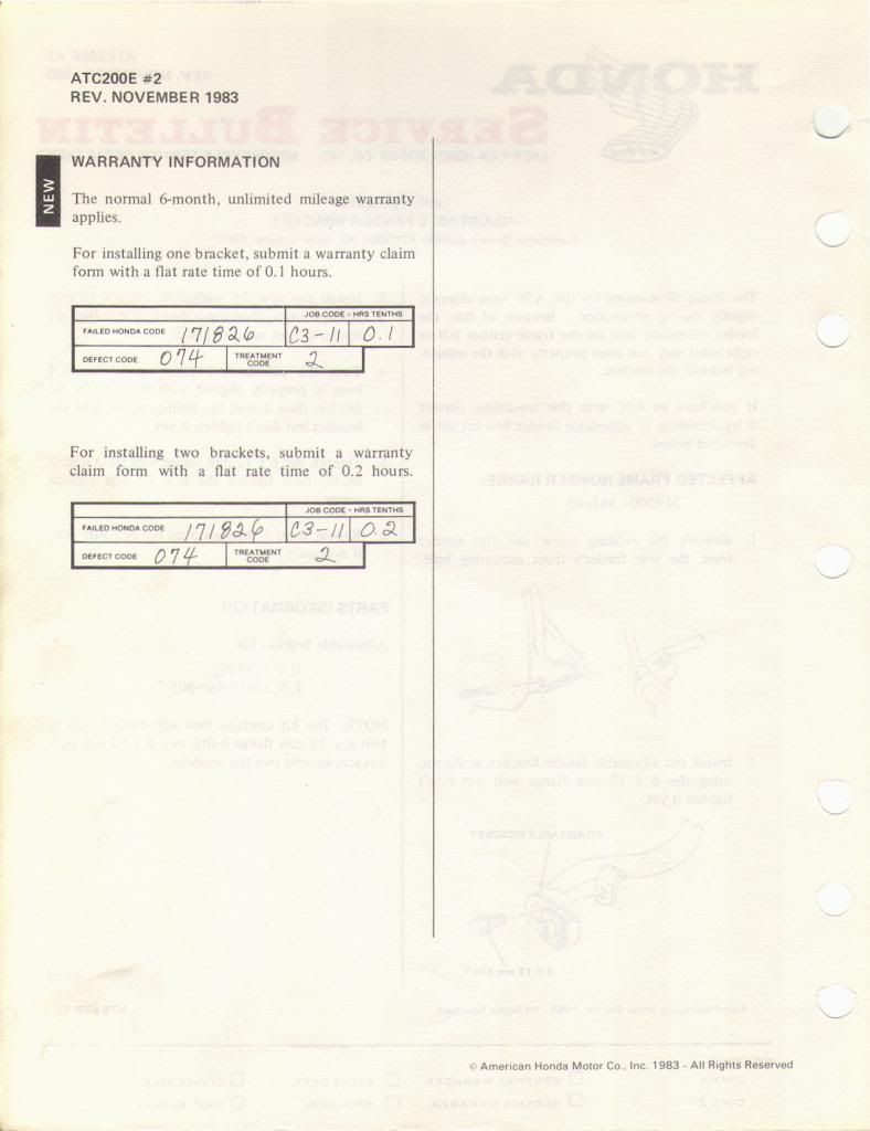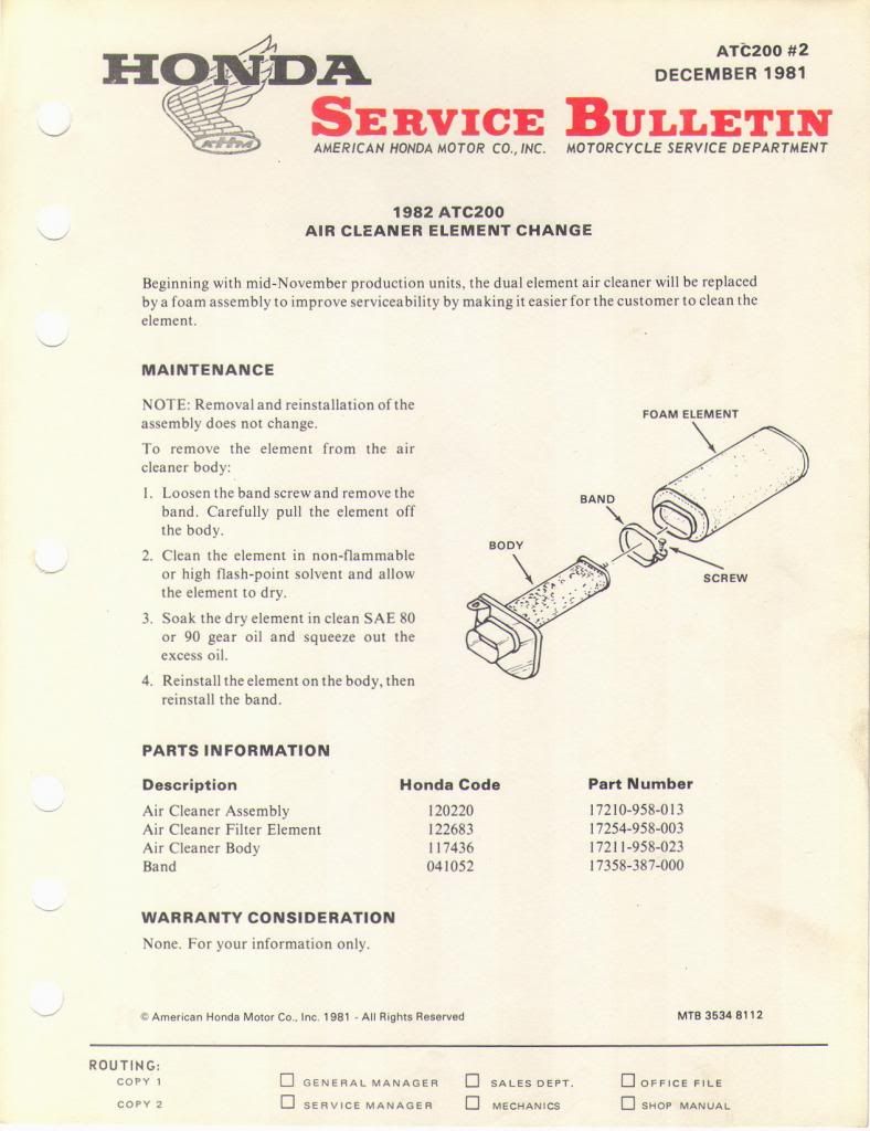 I scored a collection of Honda Service Bulletins on e-bay. The binder appears pretty complete, and includes service bulletins through January of 1987.