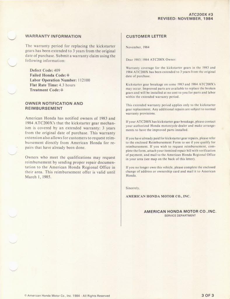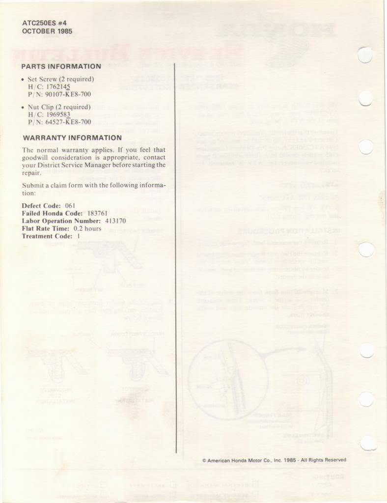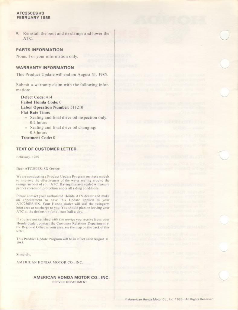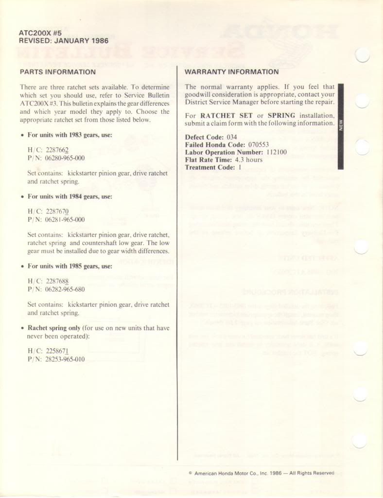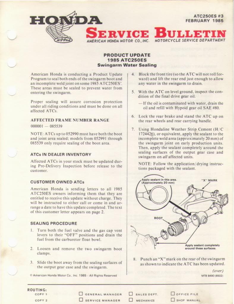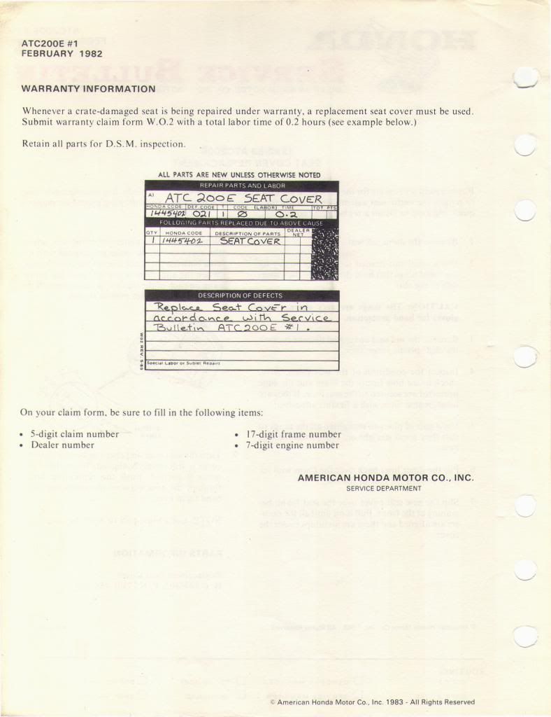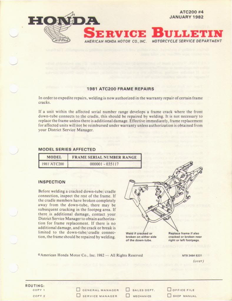 I scored a collection of Honda Service Bulletins on e-bay. The binder appears pretty complete, and includes service bulletins through January of 1987.