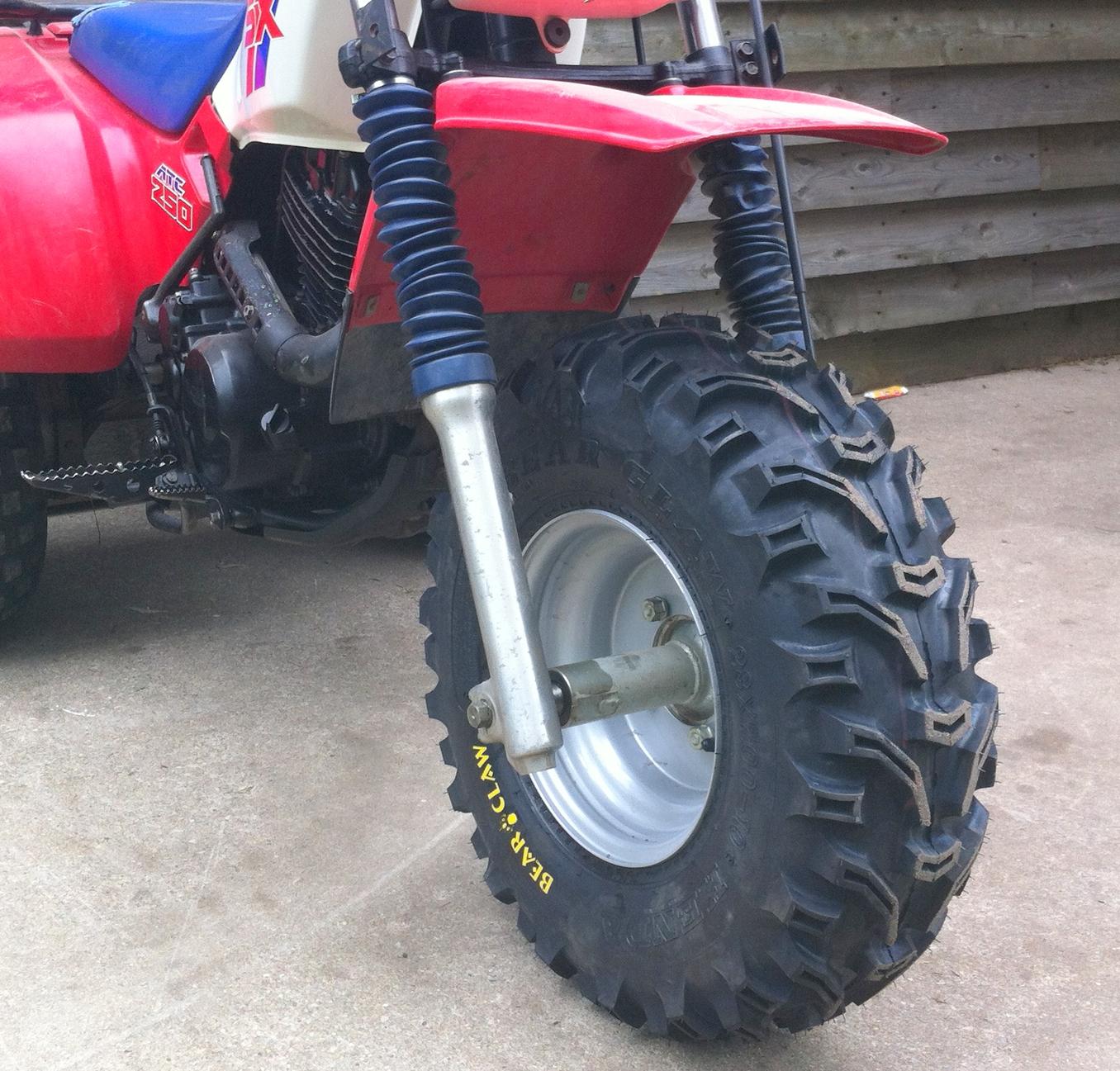 The 250sx is suppose to have three tires of the same size. Chopsaw posted the proper tire shown to be the one on the left.