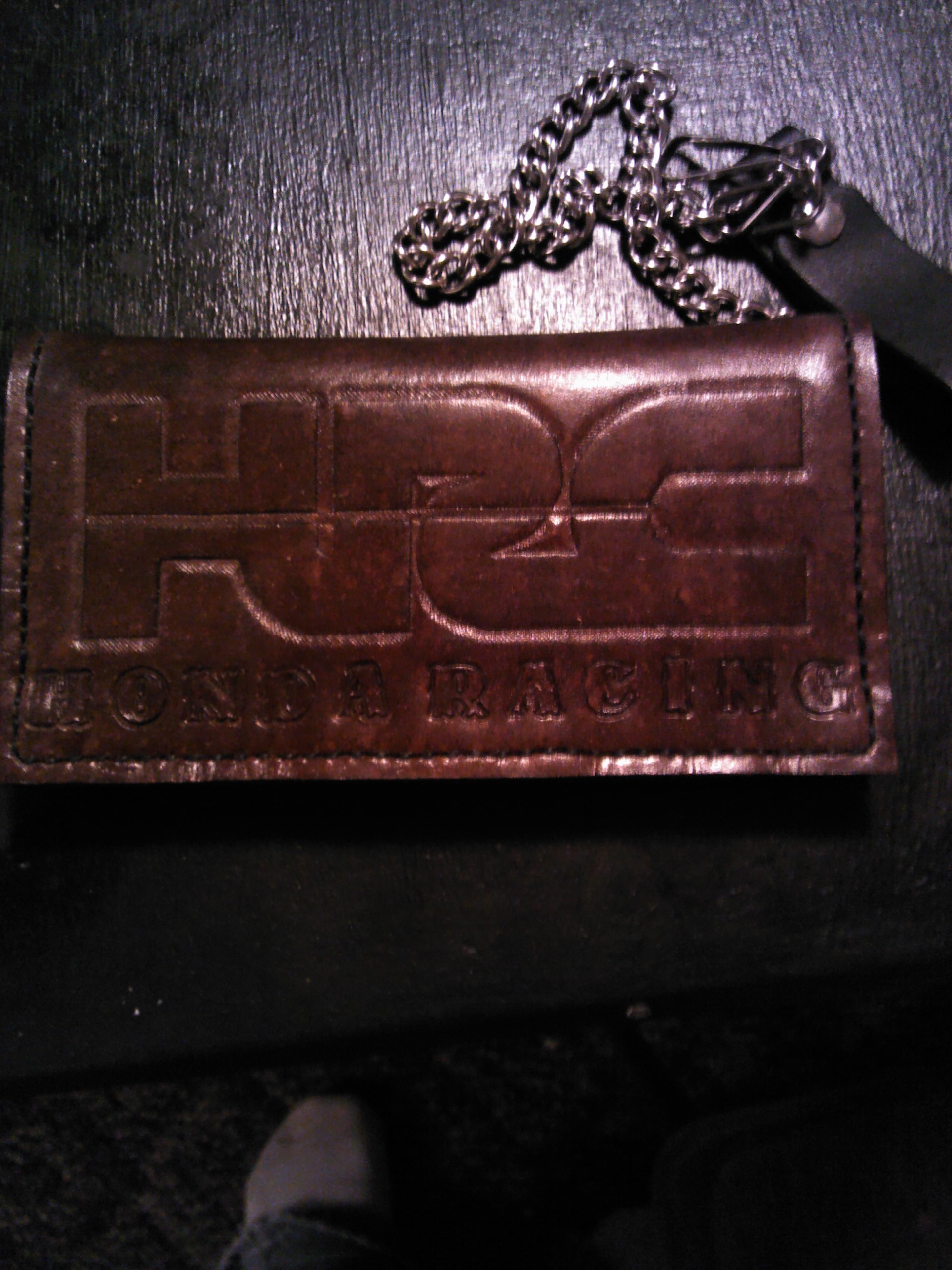 two wallets left the team kawasaki and the honda racing both with trike imprints on them. They are 85$ each shipped.
