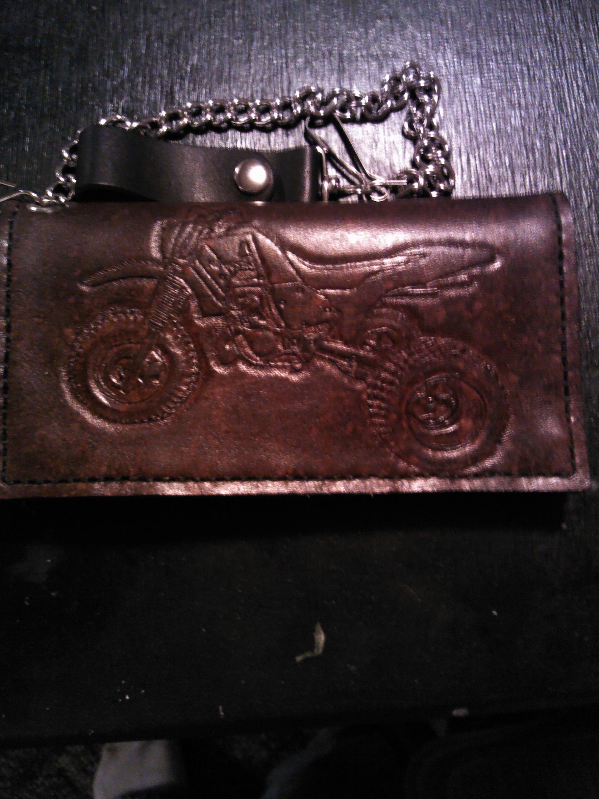 I'm am reducing prices on these whether my brother likes it or not the two wallets with trikes on them are going for 85$ shipped in the lower U.S. and the HRC one with no trike will be 65$ shipped. These are great wallets I have used mine for over a year and can barely see any wear on it at all, and I am not nice to my wallet.