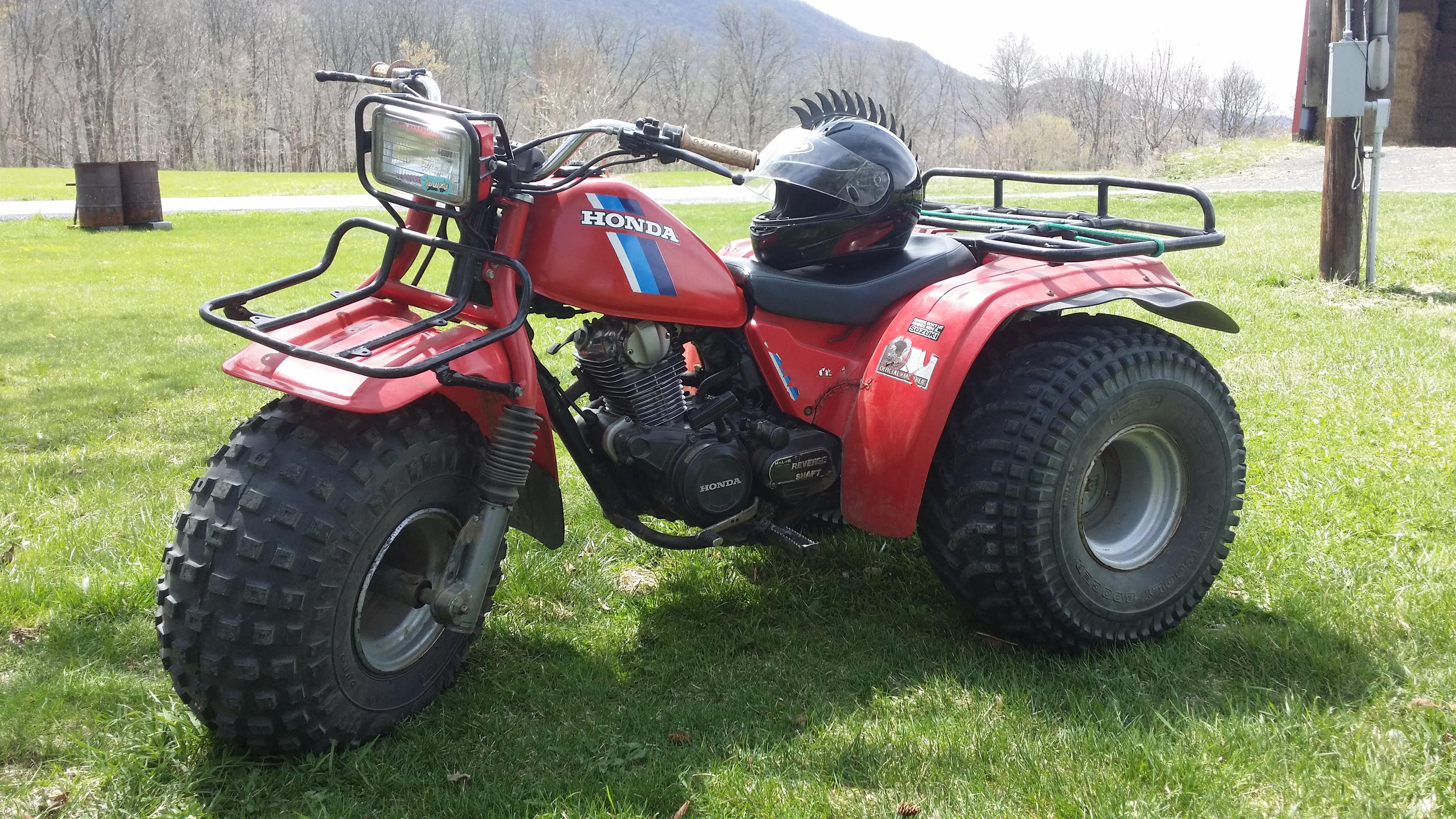 And now my latest project. Fixing the issue with the front wheel not holding air. Took the rim and tire off the front and took a spare tube I had up to the local honda shop to put a tube in it and fix it. Yea, not as simple as it originally sounded.(sensing a trend here) After installing the tube at the honda shop they noticed it STILL wasn't holding air. WTF! Apparently the tube was the right size for the tire, the valve was not in the right location I guess and was on a bind. Ok, I figured instead of messing around with it I would just put a new rim on the front and be done with it. YEA RIGHT! After looking through all the books and files he could pull out at the parts desk we gave up trying to find a single rim with even the 4x150mm bolt pattern let alone one that was 9x9. Great, ebay time. There are about a half dozen rims on ebay that would fit but all were in terrible shape and for 50-60 bucks I wasn't having it. Now what? Found some sweet new 3-6 offset rims I could put on the rear, use one of the old rear rims for the front and I'll still have a spare if I need it! Rims will be here Wednesday. I plan to paint all three rims gloss black and was toying around with the idea of doing the hubs and rings in red. Don't know yet...