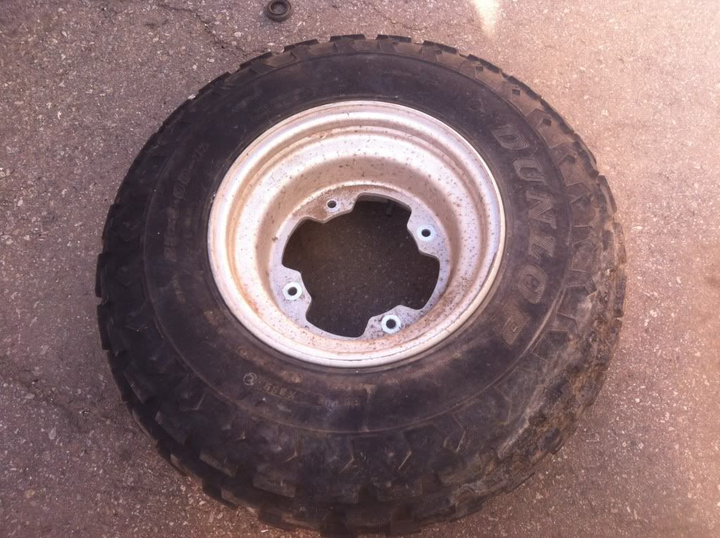 are you talking about the wide tire version? it had 22x11-10 all around. some of the others are 23x9-11 front and 20x10-10 rears. you would need to use either a 23x8-11 or go up to a 24x9-11 for the front as no 23x9-11 tires are made anymore. and dunlop doesn't make trike tires anymore. you would need to go aftermarket. i suggest a 24x9-11 kenda scorpion for the front and any low profile 10" rear tire. i would use the holeshot if it was me.