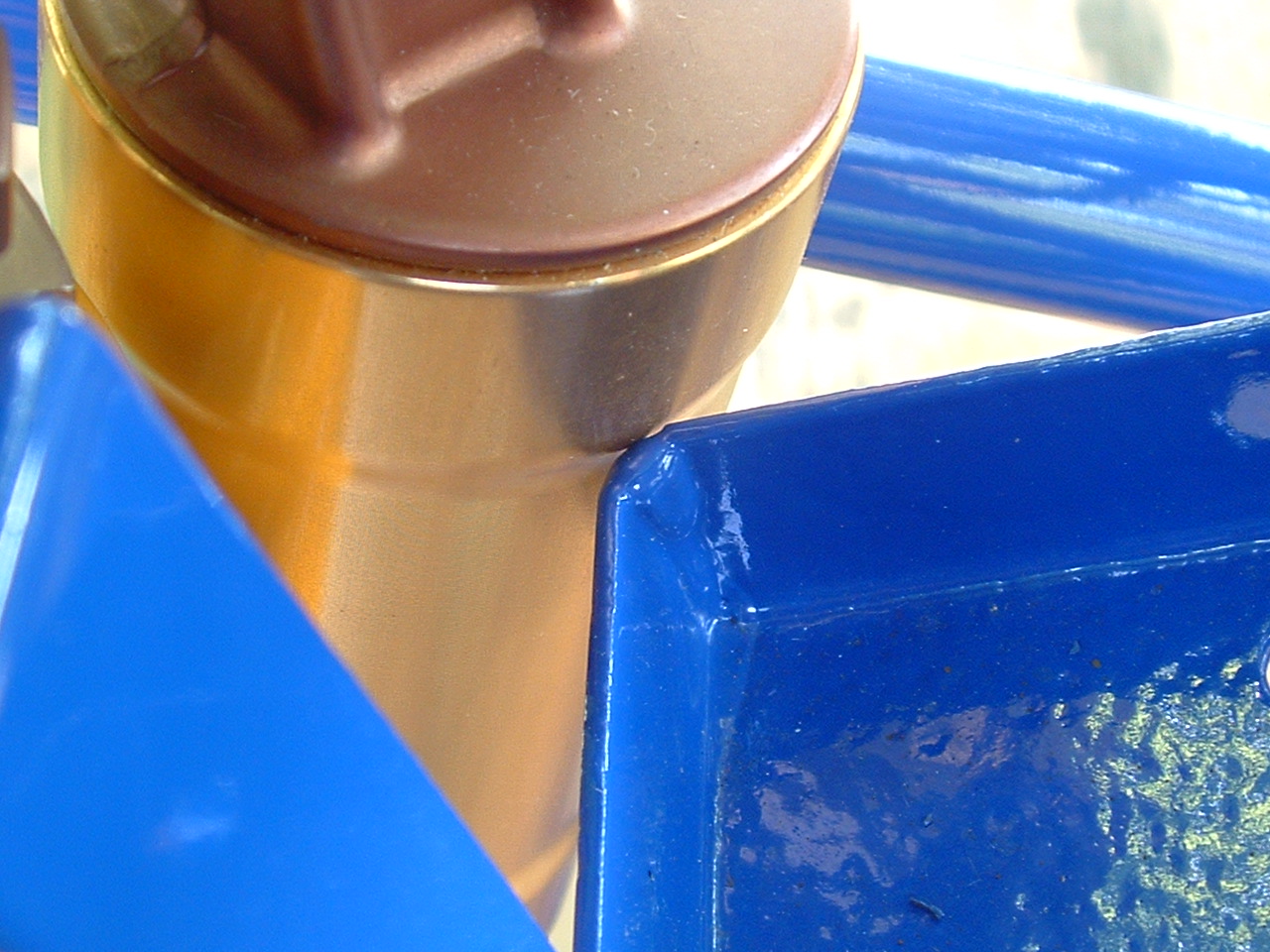I received my new chain tensioner wheels today. They're actually wideboard wheels, the old ones were skateboard wheels from the 1970's .They were a little too wide however; and I had to shave them down a bit. Now they fit great and also match the frame.