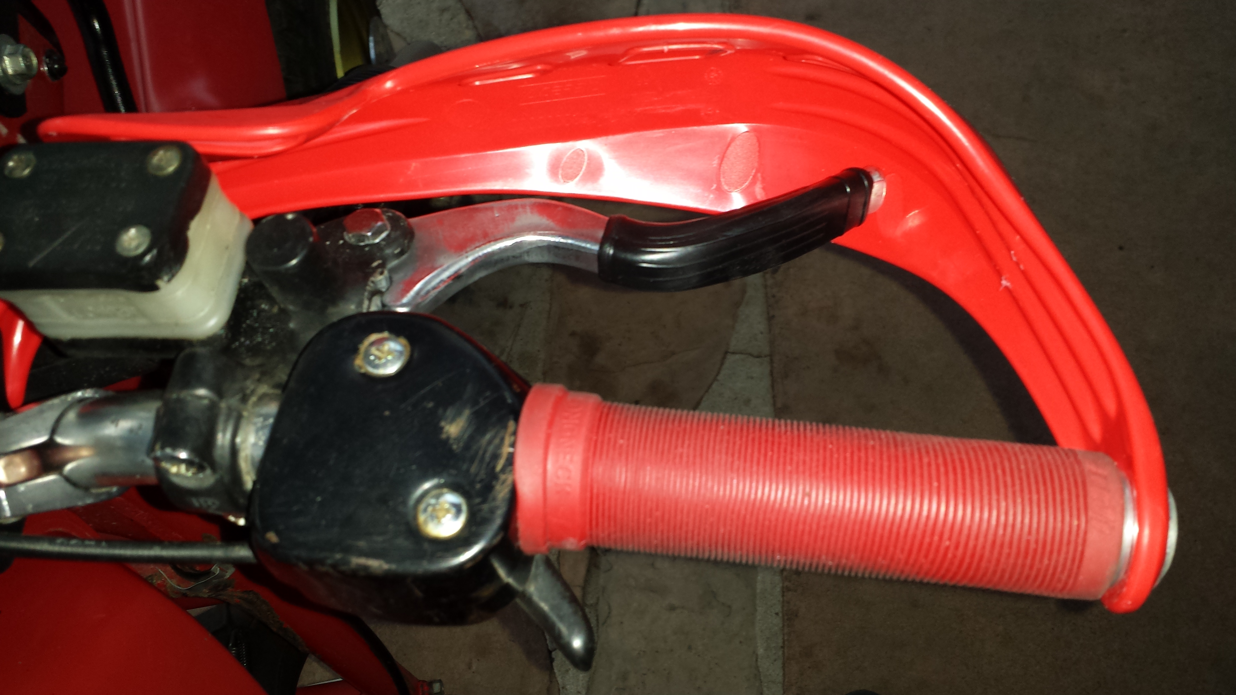 I installed my new Acerbis Hand Guards today, I shortened my levers as I had to do the same thing on my KTM Dirtbike. Installed the lever sleeves and Handlebar Crossbar Pad. I love this trike, took it for a quick spin around my backyard then snapped some pics. Last thing to do is to put my Registration Decal and I am ready for the local trails this weekend. Bring it!!
