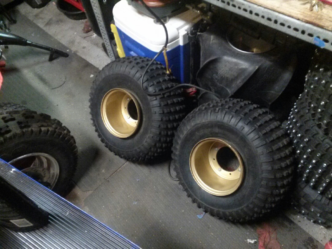 Couldn't do much on Sat since my wife threw a birthday party for me. Kind of a conjoined one as my bro in law is also around the same time. Was able to mount all the tires, but couldn't get the rear to bead seal. My compressor just doesn't have that oomph needed. Going to take them to the local MX shop and have them get the beads to seal.