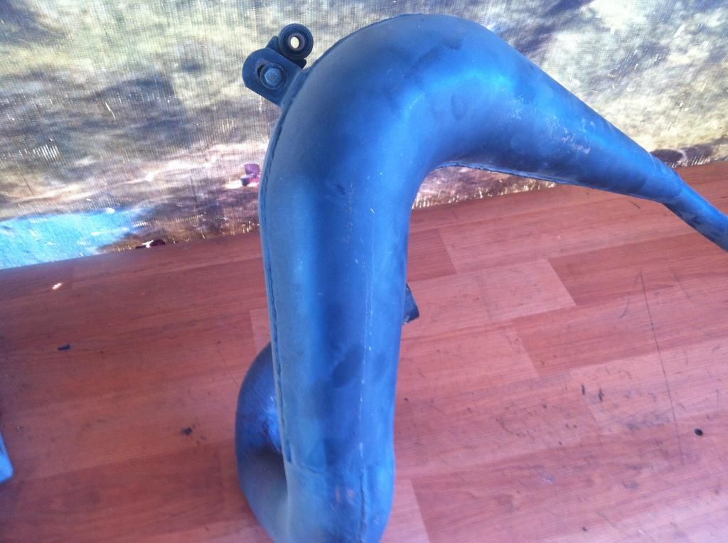 Alright so this pipe came on a none running 250r that I purchase for parts. The silencer had a COFFMAN'S badge on it that was crooked and looked like it was just stuck on there with some caulk, so I removed it. The spring holders are flat. The expansion chamber looks like it's part sectional.