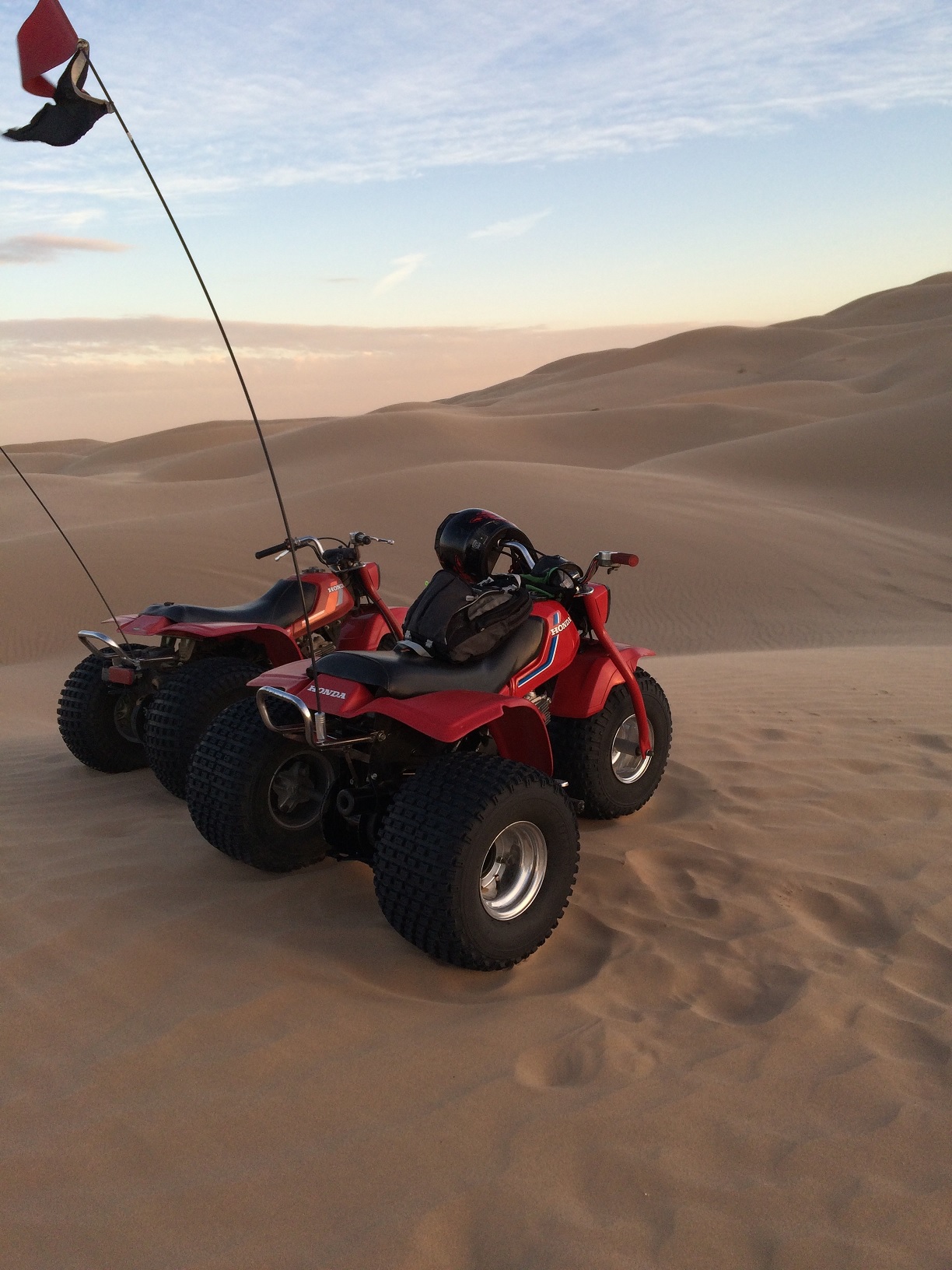 by any means but it was fun. Quads are the lazy way to get around in the dunes but the ATC always manages to make it's way into the trailer. I remember my first trip to the dunes in 1984 (Yikes!) and I rode a 1983 185s with the front suspension. Of course at age 14 and maybe 100 pounds soaking wet, the 185 pulled me around pretty easy.