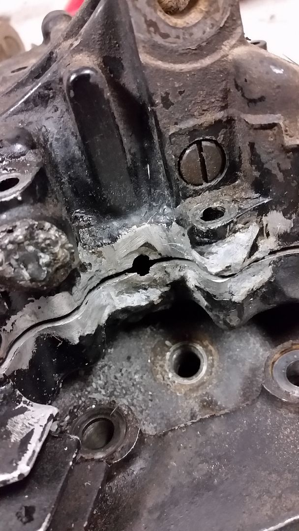 After getting enough of the JB Weld off I found what appears to be a hole in the head. After further inspection the hole looks to be part of a head modification to accommodate a aftermarket cam.