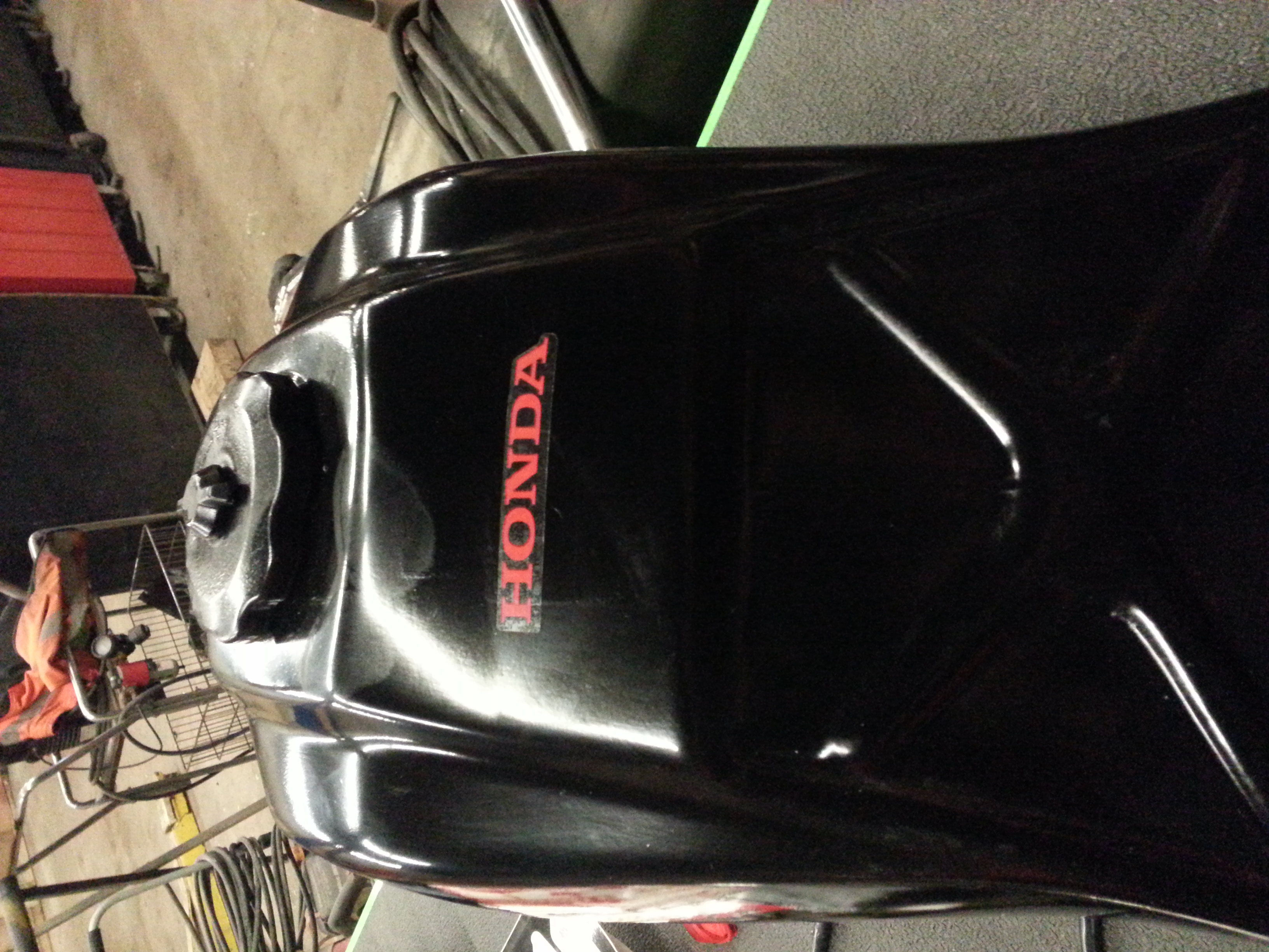 removed and painted the gas tank. primed. 3 coats and decals. im no professional. not perfect but better.