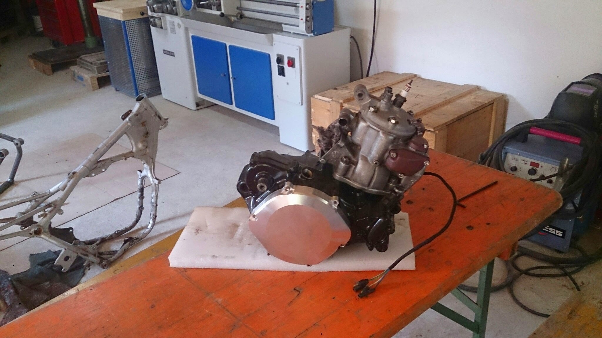 The design of the trike began during the abroad year in england of my engineering studies. I bought a cheap Honda CR250 engine on ebay uk in great conditon as you can see.