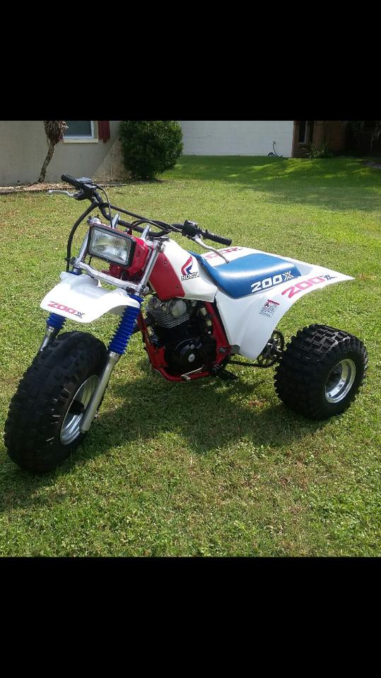 Decals!!!!!!! Dressed her up with '86 decals. Wasnt paying attention and put the small "200X" on the back by grab bar instead of the "ATC200x". I get my 250R front fender tomorrow so gonna try and switch em out. Man, i think she looks FANTASTIC!!!! Almost to the finish line!