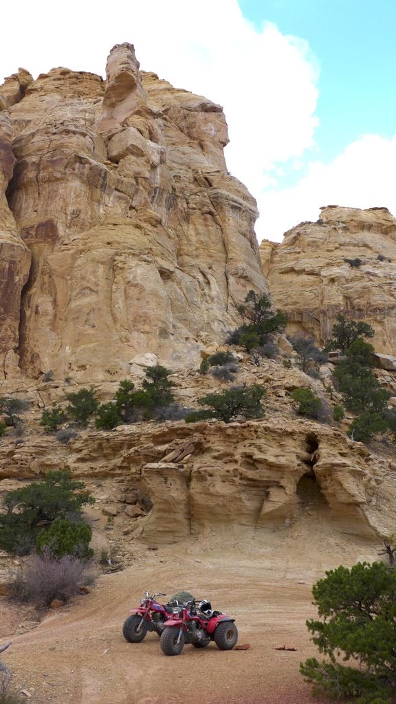 Took the Honda ATC's out for a shake down ride in the Utah mountain desert. This place is similar to Moab but better IMO, much less crowded, and you can camp wherever you want, unlike Moab. I had never ridden 3 wheelers in this type of terrain before so I wasn't sure how they would do, but they were awesome. It was awesome just riding slow and checking out the scenery. These make great camping/exploration rigs. Can't wait to go back again.