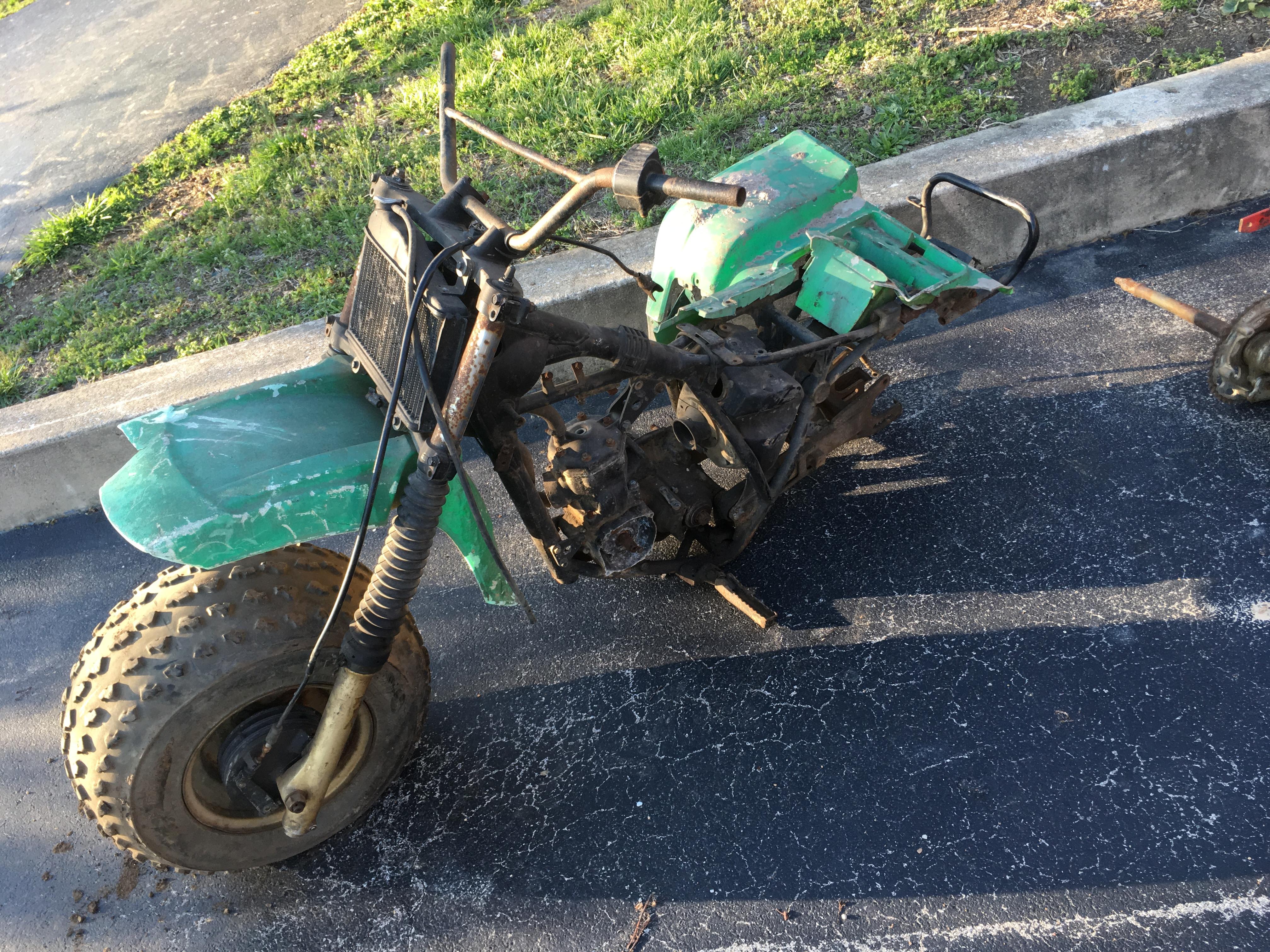 I have an 85 Tri Z engine, but it is seized up, a set of 85 tri z front forks with the front brakes and wheel and tire still on, tri z headlights yellow, tri z rear swingarm, shock axle wheels tires etc. just about the whole bike except the frame..................