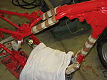 I didn't want to scratch the frame all up while mounting the motor, so I covered up all the critical areas with cardboard and carefully lifted the motor into place. It is amazing how close of a fit this motor is. There is NOT a lot of wiggle room...