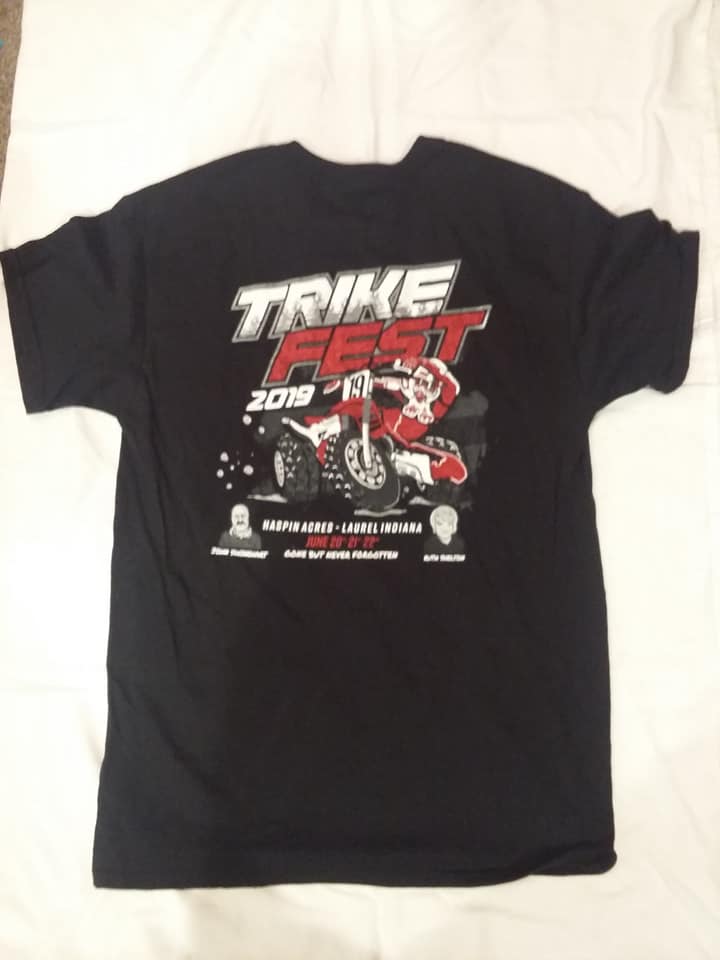 Get your 2019 TrikeFest T-Shirt, Hoodies, Zipper Hoodies, and or TrikeFest Hats. Shirt and Hats cost $20 each or any 3 for $50 . Shipping cost are $6 for the first shirt or hat. Add $2 for each additional.