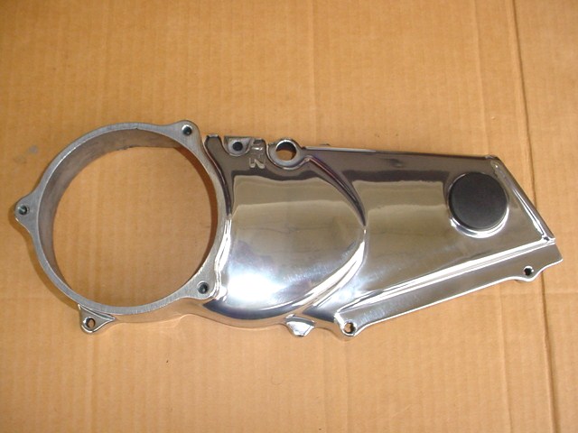 As these little 70's are latest craze with our Glamis group, here's a couple pic's of my '84 left side cover just returned from polisher. Looks just like JD's. The white plug could have three wires, for the bike to run they do not need connected to anything. Lt Green with Red Strip is neutral switch, Dark Green is ground and Black isn't connected to anything. Sad news is Honda didn't wire the '83 - '85s for lights, there should be a yellow wire in that plug. The light coil winding is there on the stator plate you need to solder a wire to it to be able to have 6volt light.
