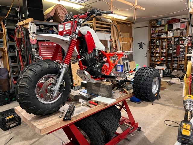 Howdy all! I recently became the proud owner of an 1985 350X!! Having grown up on three wheeler's back in the 80's, you can imagine my surprise when I learned my next door neighbor had a stock 350X sitting in his backyard collecting dust and sun rotting. After a quick offer of $500 and a handshake, I found myself pushing my new toy across the road to my house. It had been sitting for some time and in need of lots of TLC. Apparently he had the top end done by a friend years ago and had some problems. He went on a long ride to break in the new work, and after a short rest, he attempted to restart the trike and it was locked up. He got it home and parked it, and there it sat. Funny thing though, it kicked over just fine when I was looking at it, so not sure what to make of that. I'll be posting some photos from my bore scope inspection for advice shortly. Since it needed so much TLC, and being amazed at some of the restorations I've seen recently, I decided to do a full resto-mod. I have had an endless supply of packages arriving at my doorstep over the last three weeks with more to come. The biggest issue however was the discovery of rust in the lower frame. You can see in the photos it was pretty extensive. It has become one of those scenarios where you start into the repair and it keeps getting more involved. I've spent so much time now repairing the frame that I am committed. Thank God I am almost done and she'll be off to PC soon. Lots of fun to be had once I begin the reassembly. I also decided to have BVC Trikes build me a 4" longer swingarm, excited for that to be done. Looking forward to getting to know the group and learning! Happy trails, Nate