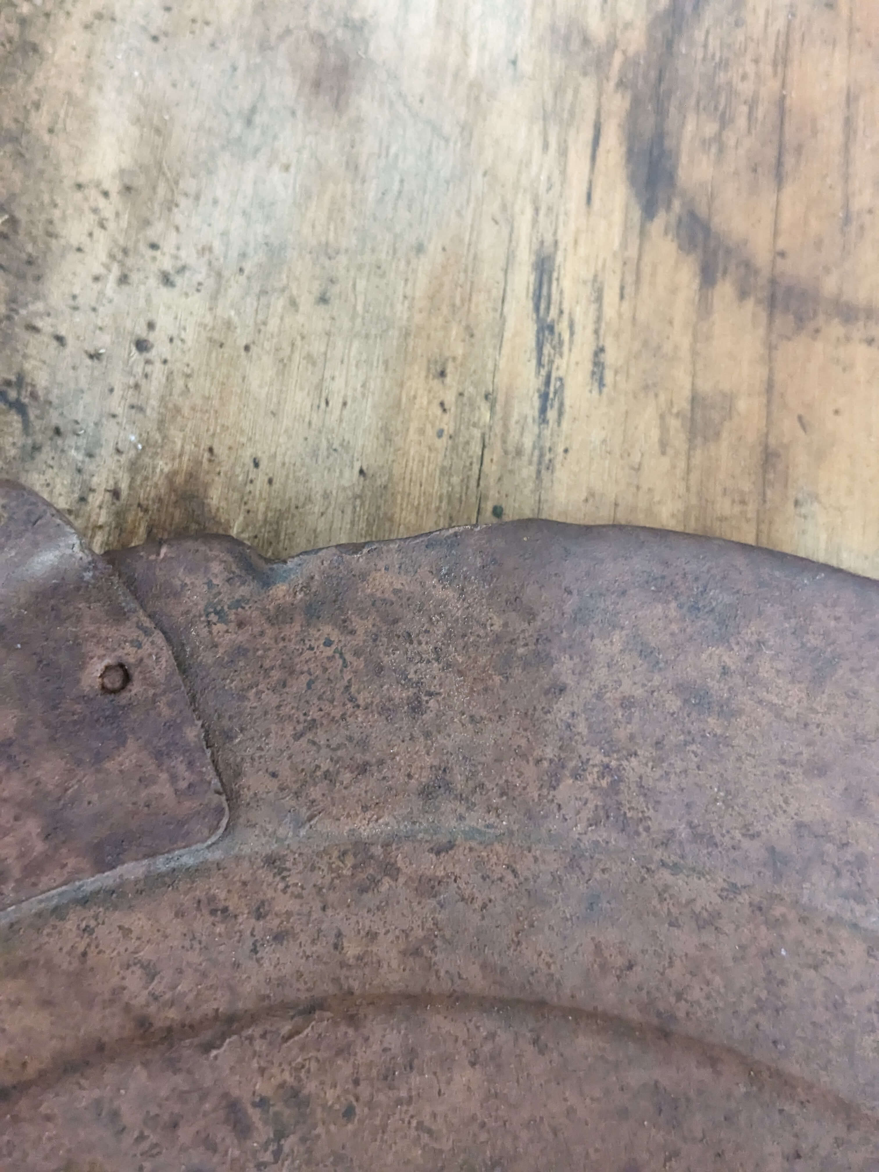 Under the brake drum I found the reason the brakes didn't work: corroded shoes and a failed lining. I was hoping to reuse these shoes but I'm not so cheap as to try gluing them back together... new shoes are on the way.