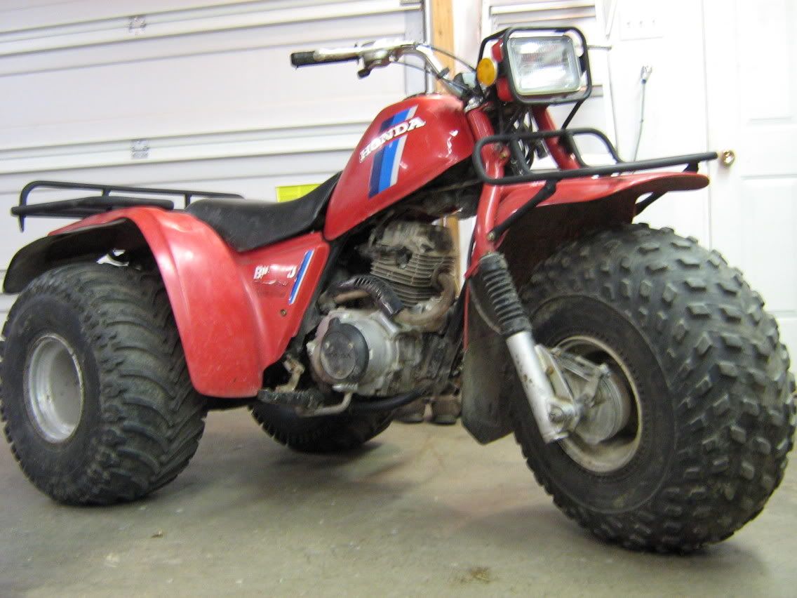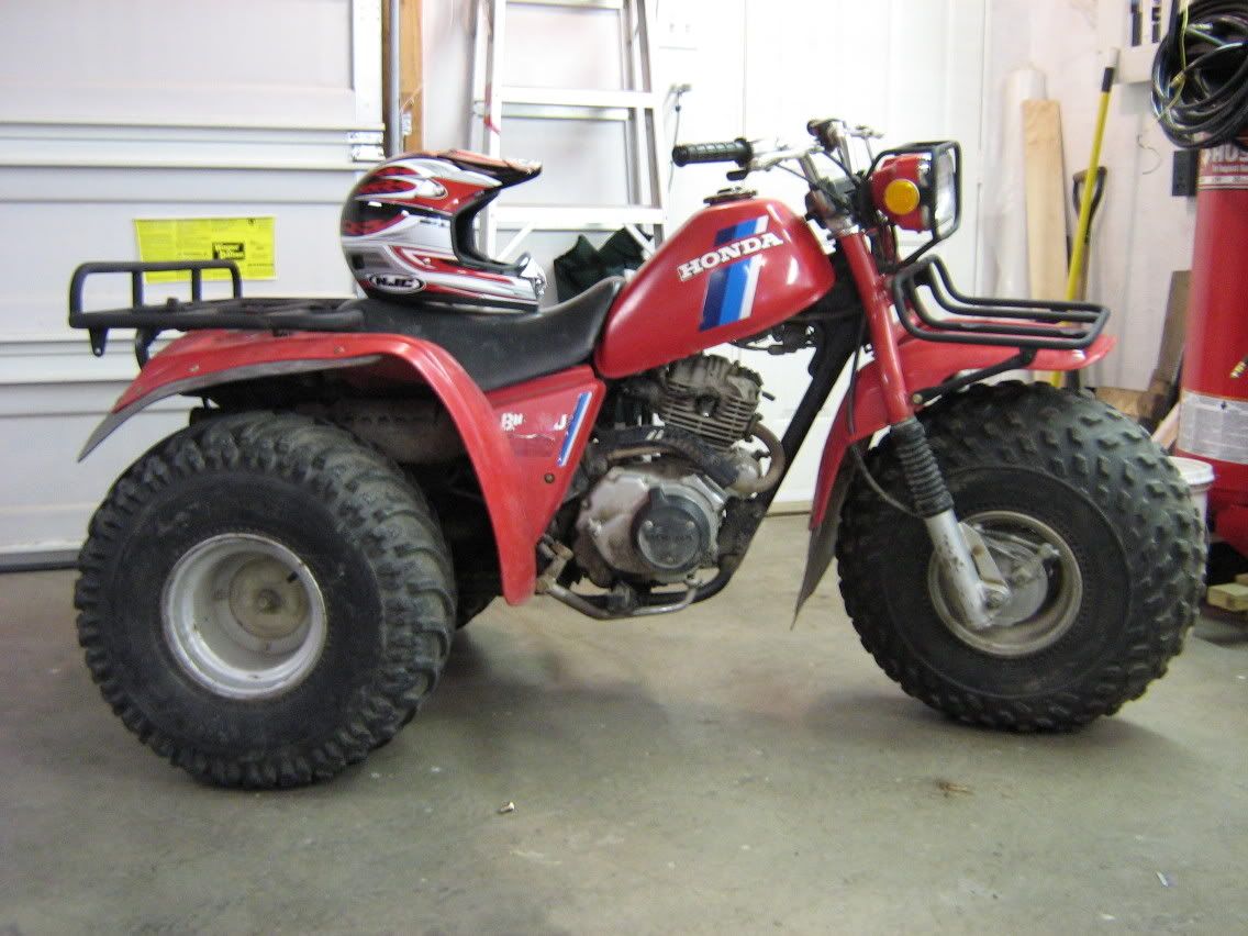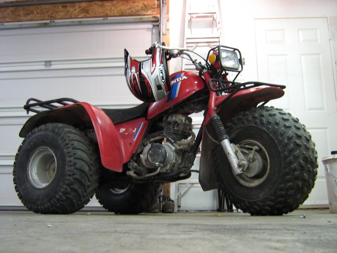 hey i couldnt find a newbie introduction spot (may have missed it...if so, please move this thread) so i decided to post in here. Im a 16 year old from canada who just bought a 1984 Honda ATC 200ES Big Red 2 days ago and wants to learn some more about them. an hour after i bought it i ripped the racks off, sandblasted them, and painted them a real nice dull grey. my trike is soon to have a K&N filter, 2500lb winch, and many other fun things. without babbling too much, heres the pictures: