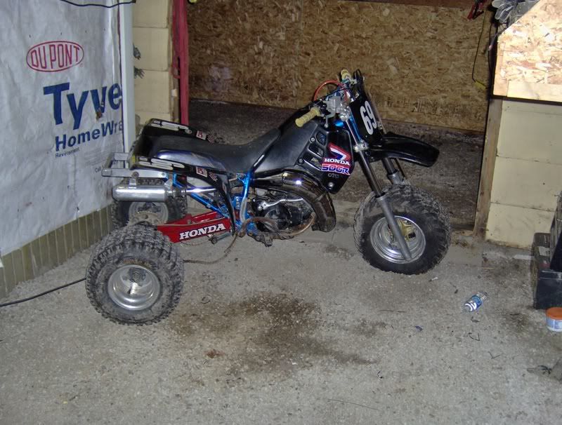 85 Tecate, 2002 Honda 300EX, 83 & 84 250R, a bunch of honda 4 strokes from 90 to 200cc, a klt 110, ytm 200, polaris 250 cyclone, '05 Roketa 125 (cheap chinese pitbike to beat on), '69 Scrambler 6x6, and a 52 John Deere B (hey its a rowcrop narrow front, that counts right?)