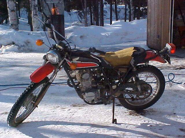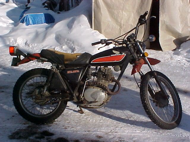 Yeah Ive been wanting a motorcycle (smaller <200cc, street legal) for quite some time now, and I pulled this old 1977 XL175 home today. It was my dads given to him from some old family friends. This thing has been sitting (and hasnt run) since 1985!!! This was sitting for the entire life of a 3 wheeler!!!The people who gave it to my dad had tried to get it going and rebuilt it in a shop class but never got it to spark. I got it saturday and thanks to my and 82'185s excellent wrenching skills
