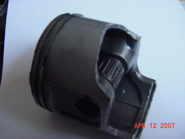 that would have made sutch a noise that the neighbors would have called 911!! I have had this happen to two differant snowmobiles. The first one was a 500 and it made sutch a growel that I thought had put a hole in the side of the case. The Second was my 780 Mach Z, It made a LOUD CRACK!!!! and stopped. In both cases the skirt broke off just like this one.