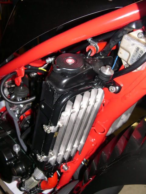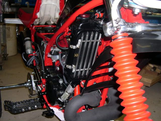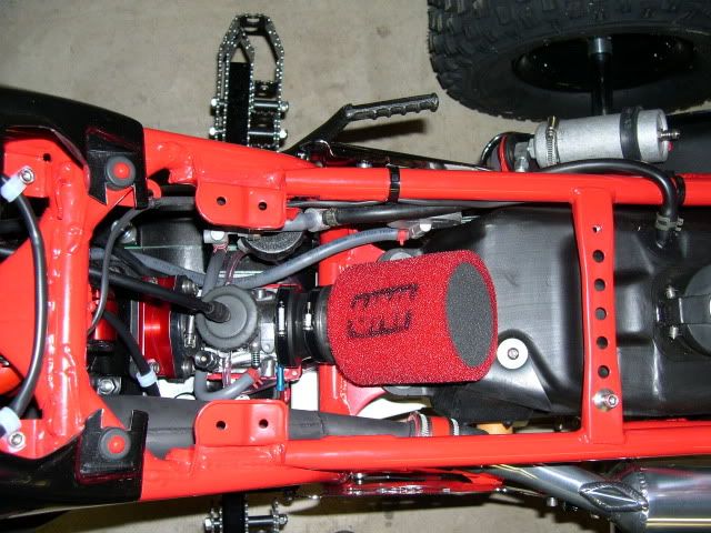 I have something bigger and better planned for this air intake but I am waiting on some parts to make it happen. In the mean time I have devised this. I used the stock airbox boot but reversed it. The problem with running a PWK 39MM is that the bell is 2.4375 or 62MM. Not many air filters fit it and forget about buying any silicone adaptors to fit it. Oddly enough the stock boot fits it like a glove when reversed. Leaving the other side 2.250 or 57MM. From there I used a piece of 16 guage 304 stainless exhaust pipe 1.250 in length to adapt a UNI filter on. It fits perfectly under the seat. Just need to relocate the overflow bottle now.