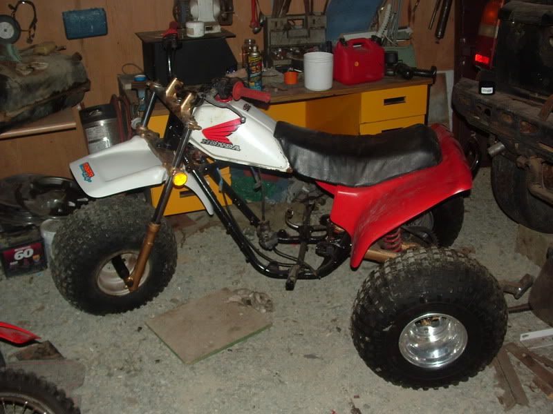 Alright my garage is a mess and so are my bikes. But I figured I would post a few pics. The decision has been made that my 81r is gonna have a wide front tire. I just bought a new front fender. The 70 is a 84 and isnt running. The xl 80 runs good, its a 84 also. The 84 250r is a running basket case. It's my fathers bike. The white 83R is my buddies. Oh and the honda 50 project. Also a pic of me and my