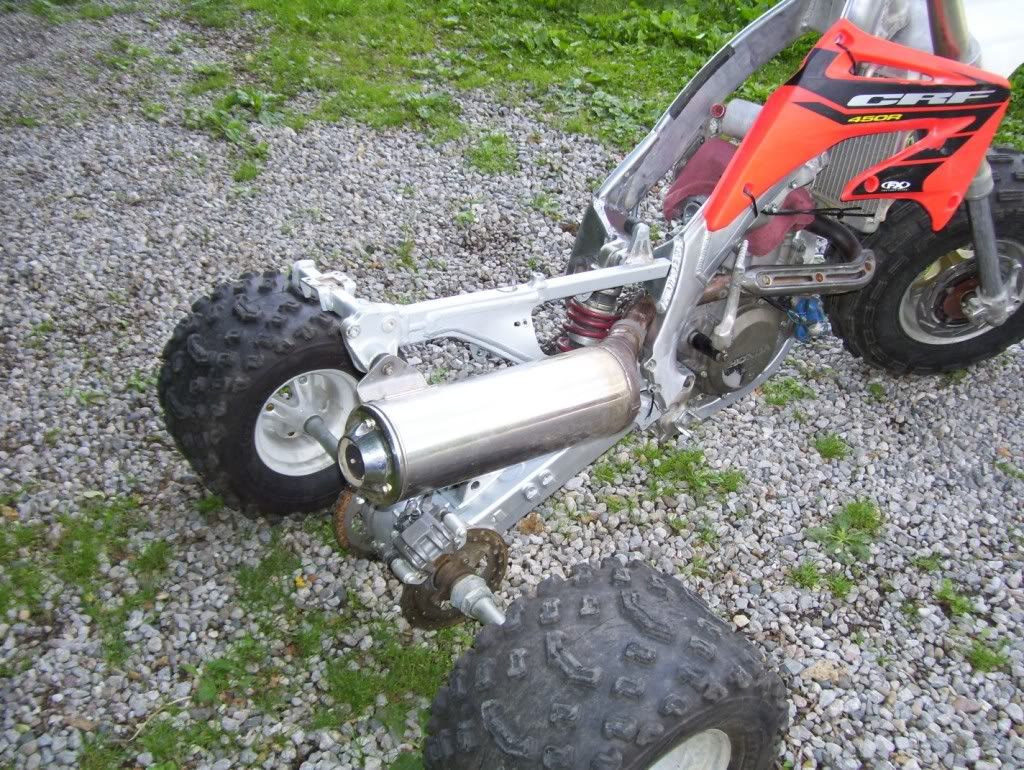 The subframe I used was from a 05 TRX, that was bent. I cut the weld loose on the rear tube that holds the two sides together. That was the only part that was bent. I then used the exhaust to hold It In place while I made the mounts. I just made some flat plates, then sliced the square tube Installed the plates where I wanted them. Then I made mounting tabs and welded those to the crf frame. Once the mounting tabs were welded on I tacked the plates to the subrame. Then pulled It all off and finish welded everything. Once all that was done, I moved the front seat mounts out so the seat would mount just like the quad. I did cut about 3" off the mounting side of the subframe, then sliced It & welded the plate's on.