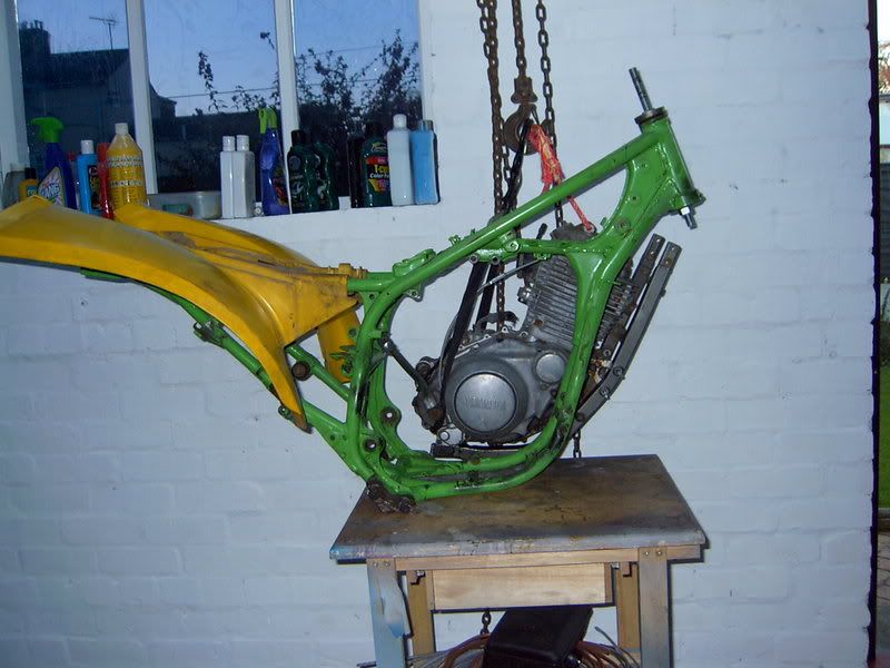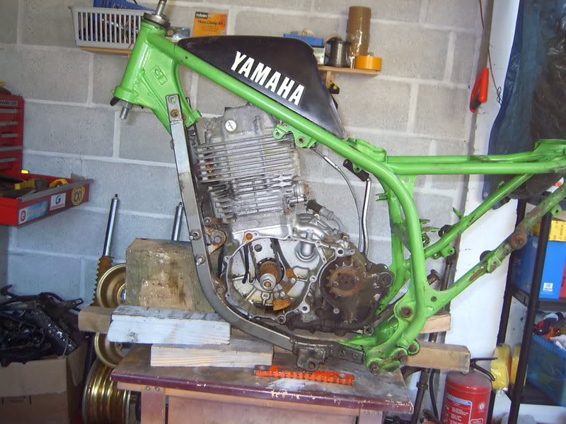 the SRX cradle is bolted in place & lines up perfectly with the Z frame. Engine goes in & out without to much stress... next job is to plumb bob it straight & start work on supporting the headstock. the twin carbs will just squeeze between the top rails. I'm leaving the back mounts until last just in case an xt lump turns up, this engine doesn't bolt through the swinger like the xt. i'll add more nextweek, now on the beer for two days, Rugby world cup final & F1 showdown, yehaaaa
