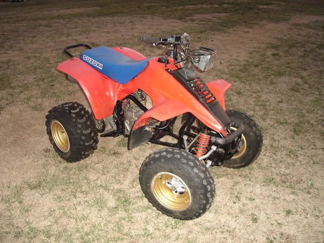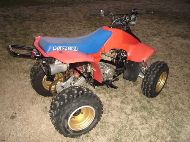 I have been tweaking and playing with my 85 & 86 200x's a lot lately and have left my LT230E in pieces waiting for some parts to come in. I was almost convinced to tear it all down and repaint and redo everything, but I got my parts in Saturday and spent Sunday and this afternoon putting it back together. It's in decent shape to be a rider.....it's bored and cammed with a Supertrap.