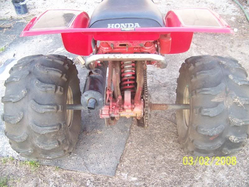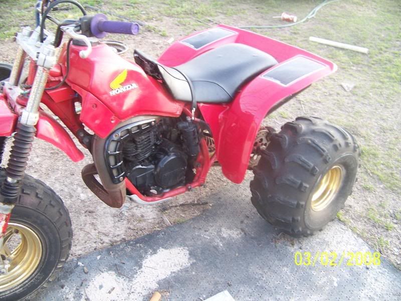 a good Freind of mine, who has ridden with us many times, has made a switch after seeing how much fun we have on our trikes he traded his worn out honda 250 recon/sport trax for a 1984 atc 250r, the quad needed work and was worn out, and the trike needs work and is worn out, but it has some shinny new plastics and is all there except the brake system and a headlight setup. All and all it was a good trade, me and him went to DreadHEds house yesturday to pick up the trike along with some Pc'ed goodies and dropped off some goodies to be pc'ed as well