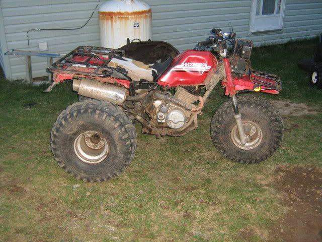 1985 Big Red 250es, Broken fenders, Lifted with RM125 air shock, Fartcan