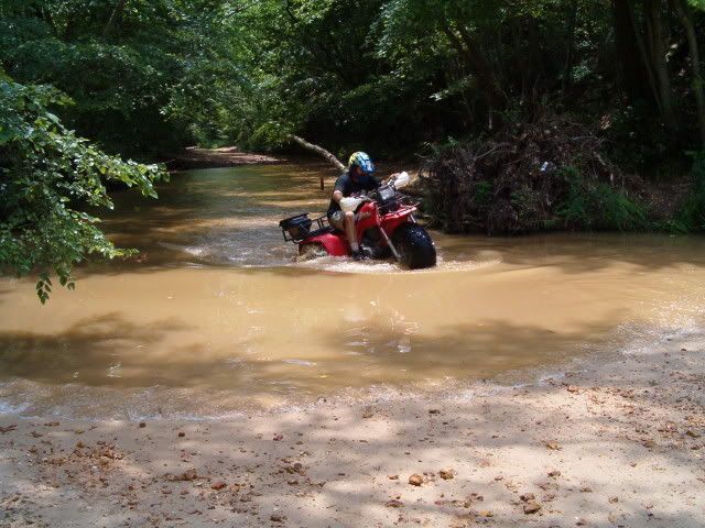 Going through deep water is loads of fun! My SX won't quite float with me on it but it does come very close. If you let a rear tire rise up it will roll over quick! Here's a pic of my 25's underwater...