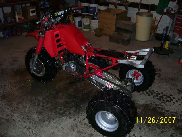 So tonight I decided to fabricate my own grab bar for my 225dx. I used 2 pieces of 1 1/2 inch flat bar and a round tube that was laying around in the garage. I plan to paint it black and weld shut the opening of the tubing and do some trimming at some place.