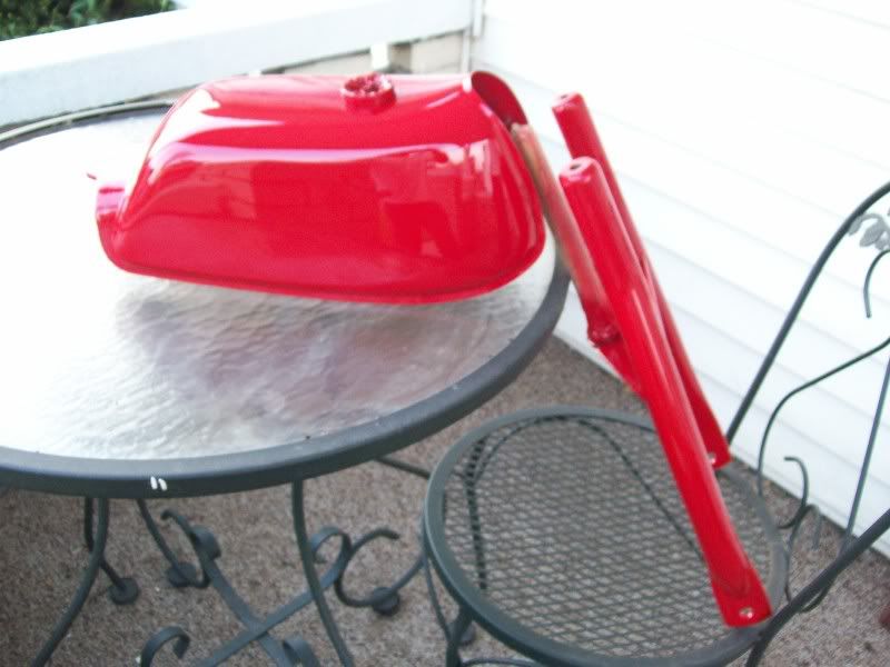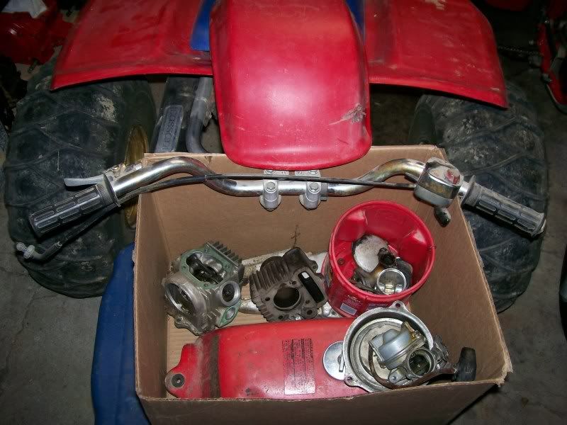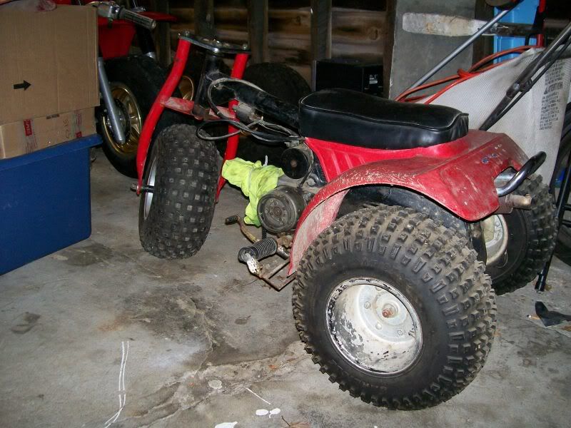 I picked this up the other day. It is actually a pretty solid piece. No rust, very straight and complete. The guy was going to re-ring it because he said it wasn't running right. He got it all taken apart and lost interest in it. Other than being apart the only real issues I've found are the plastics were chewed on very extensively by his dog. and the seat was unprofessionally recovered. I have a few 70 engines and parts around so it should be a fairly easy fix. This is an 84 like one of the ones I fixed up for 1upfront when he was a kid. She is going to be all stock.