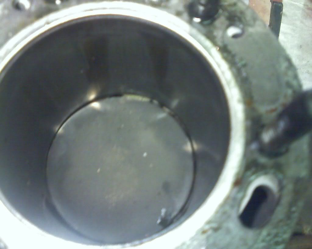 , yes it looks like it is egg shape and when you look down inside the sides of the piston are tight and the front to back you can see the rings of the piston touch the sides of the jug