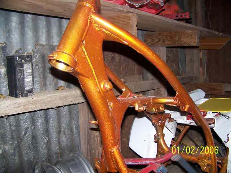 So Far I'm rebuilding the top end, lapping the valves, touching up and cleaning up any clutch levers, brake lever etc. New seat cover, new plastics and various things. Doing all this has exhausted my money supply and so i don't have the extra for powder coating at this time. I will do it in the future but do you guys think I should just sit on it for, who nows how long, and wait to get it powedered or go ahead and ride and enjoy it?