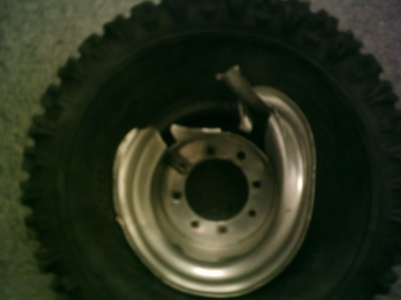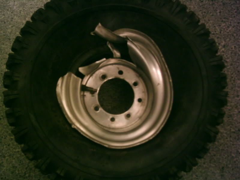 A few years ago, during the winter, my friend and I were riding along the edge of the Mississippi. He was on my Banshee, and I was on my '86 ATC250R. We were going pretty fast, you know, in case the ice was thin. I was sliding past a hump of frozen cattails. Not a full-lock side slide, but just a little sideways. I clipped the frozen chunk of mud at the base of the cattail and it bent my front rim. I didn't flip, but the front tire went instantly flat. When you are on snow/ice, and your front tire is flat on a three wheeler, you cannot steer (in case you didn't know that already).